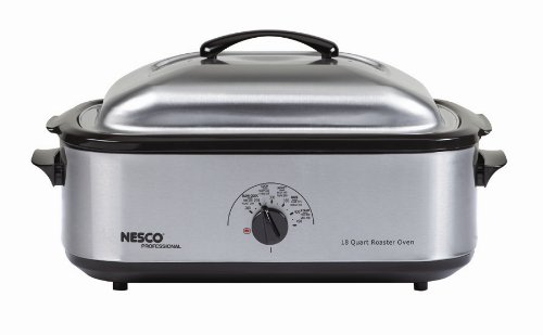 Since 1932 the Nesco brand name has been synonymous with Roaster Ovens. With a Nesco Roaster Oven you can roast, bake, cook, steam, slow cook and serve. The Roaster Oven is portable so you can make great tasting meals wherever you go. The exclusive "Circle of Heat" heating element wraps around for moist, even cooking and the automatic temperature control maintains even cooking temperatures from 200 degrees to 450 degrees. Stainless Steel body and lid are durable and fit right into any kitchen. Removable steel rack is designed for better baking and fat-free roasting. The 18 qt size is designed to hold up to a 22 lb Turkey. It's ideal for large family gatherings and other social events. Recipe guide and use / care included.